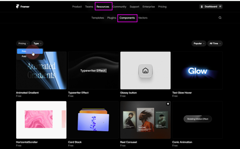 在 2026 年,Framer 已發展出極為豐富的免費資源生態系,官網提供大量由社群開發的免費組件。