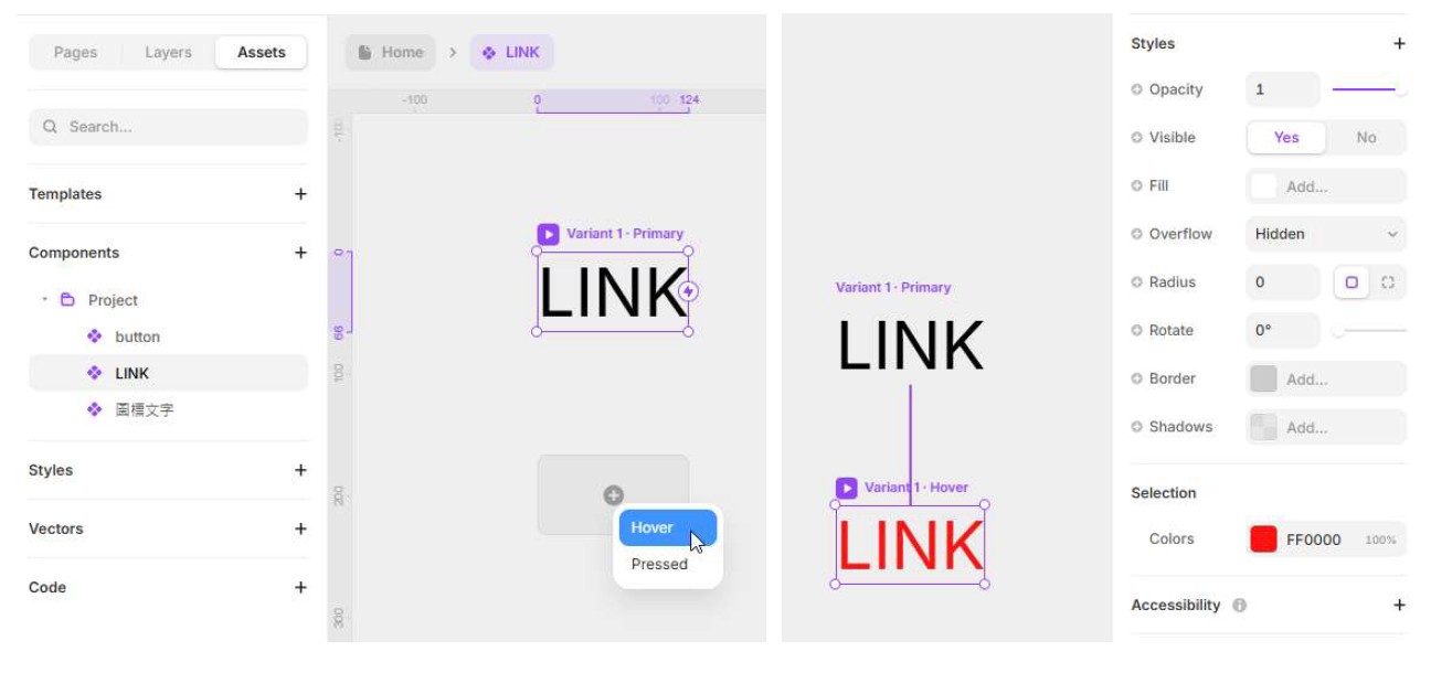 Framer中的元件狀態(Component States)允許設計師定義和管理元件在不同互動情境下的視覺表現,例如懸停、點擊。 通過使用元件狀態,可以輕鬆地在設計中實現動態且具有交互性的效果,提升用戶體驗。
