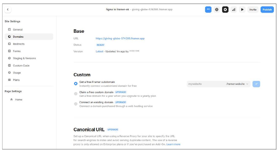 既然 Framer 能做設計,當然也能直接幫您架站。它連後續的維護都幫您包了,想改用自己的網域(Domain)或是做版本回溯都超簡單,不怕改爛了回不去。 重點是它的連線速度真的很快,我有實測過,所以完全可以放心地把網站直接託管在它們的伺服器上,省掉自己去租主機或弄後台的麻煩!
